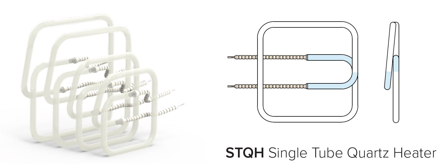 Ühe- ja kahetorusoojenditega samal temperatuuril toimivad infrapuna-volframi- ja kvartshalogeentorusoojendid pakuvad ühtlast soojust kõverate või ebakorrapärase kujuga materjalide jaoks.